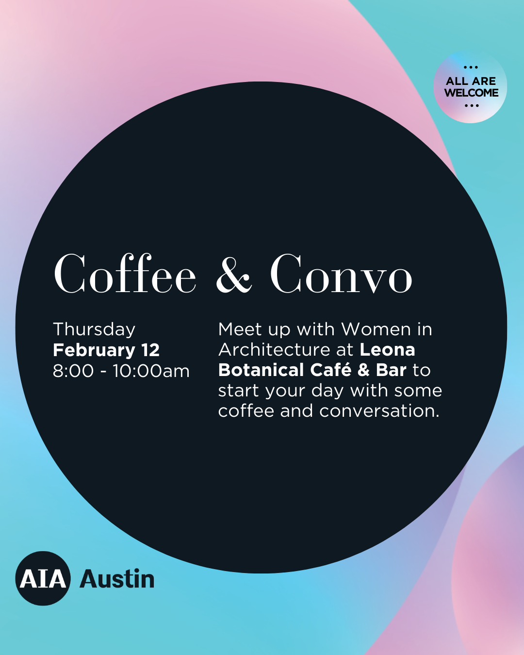 Join us at Leona for our first Coffee & Convo morning happy hour of the year. Looking to casually build your Austin design community network? Curious about architectural advocacy in Austin and how designers can show up for the city? Let’s talk about it over some coffee.