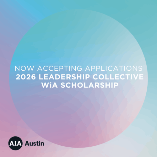Applications are now being accepted for the AIA Austin Leadership Collective Class of 2026 through November 24th. AIA Austin Women in Architecture Committee is thrilled to offer two scholarships this year for women or non-binary persons in architecture and related professions, preferably awarded to BIPOC (black, indigenous, and/or persons of color), as a part of our initiative to increase representation throughout the field of architecture through education.